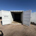 This steel storage container has swing doors on one end. The unit is 8′ wide and 8.6′ high.