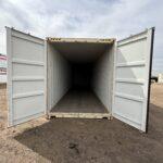 This steel storage container has swing doors on one end. The unit is 8′ wide and 9.6′ high.